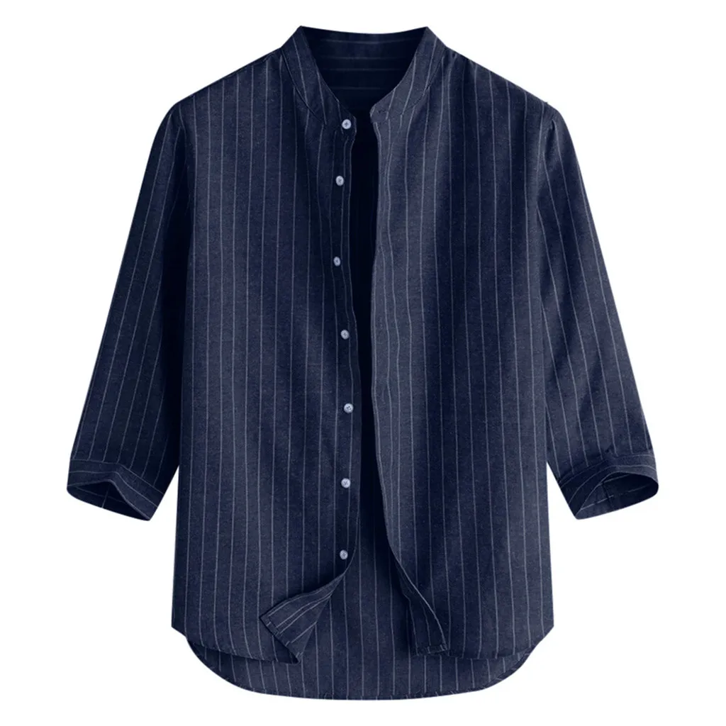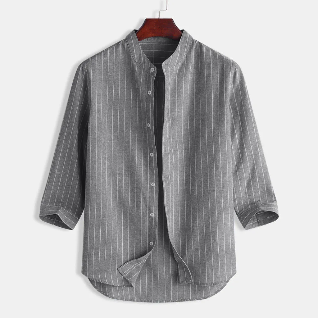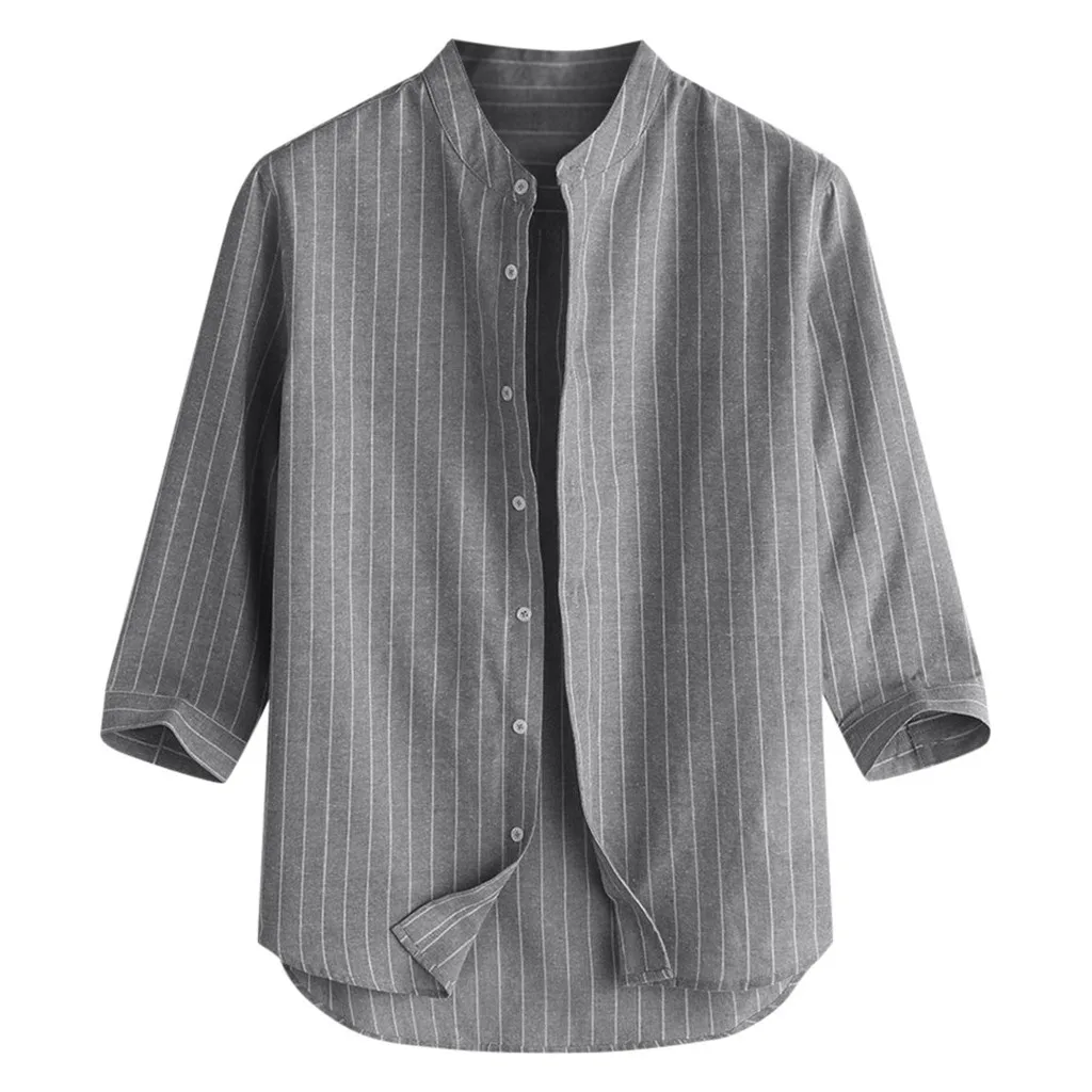 Striped Linen Three Quarter Sleeve Men's Shirt