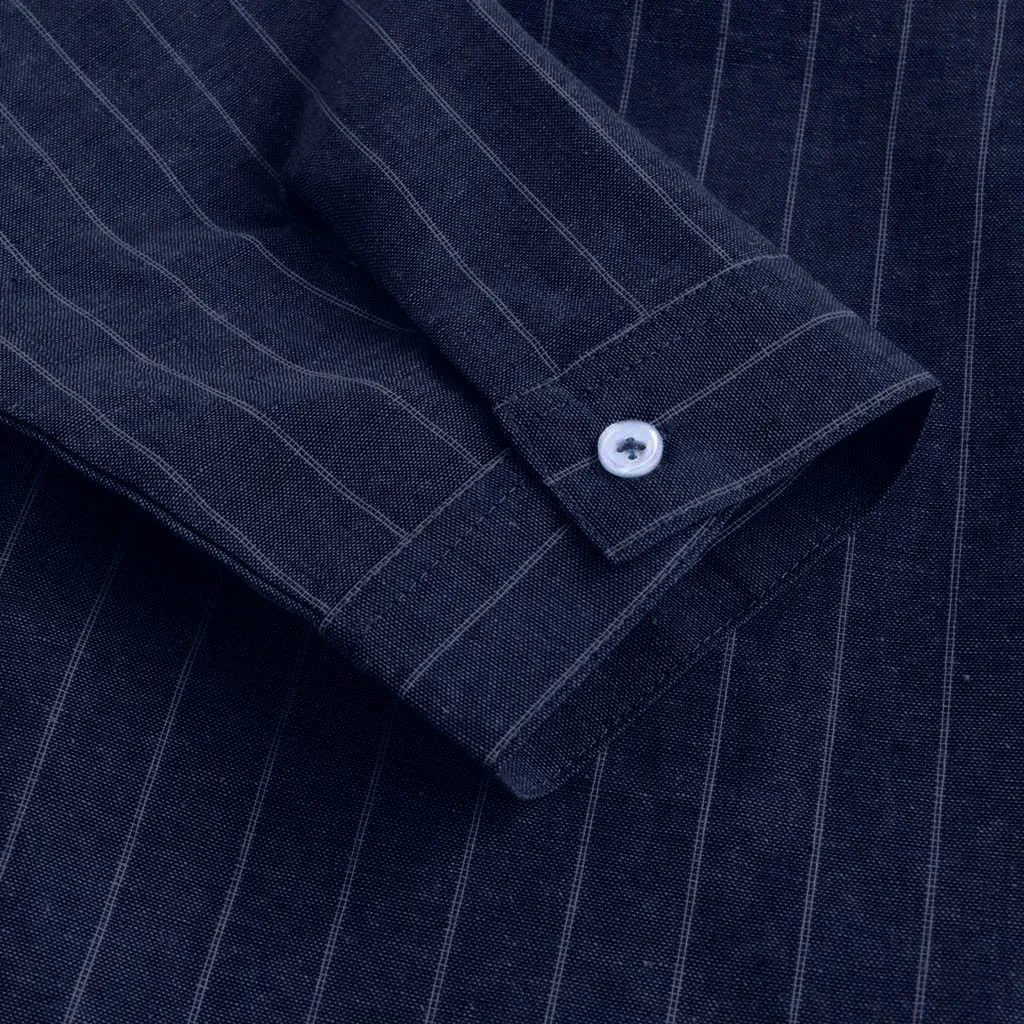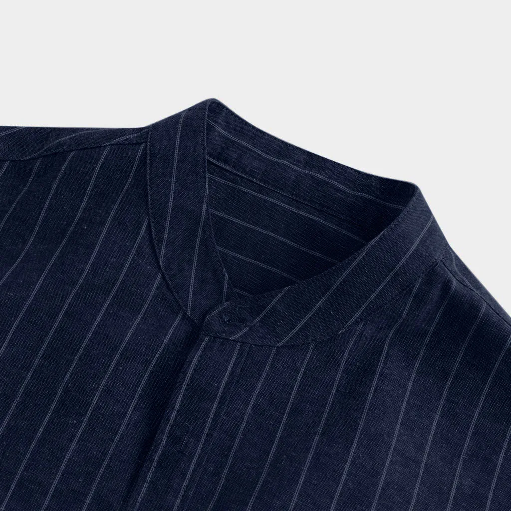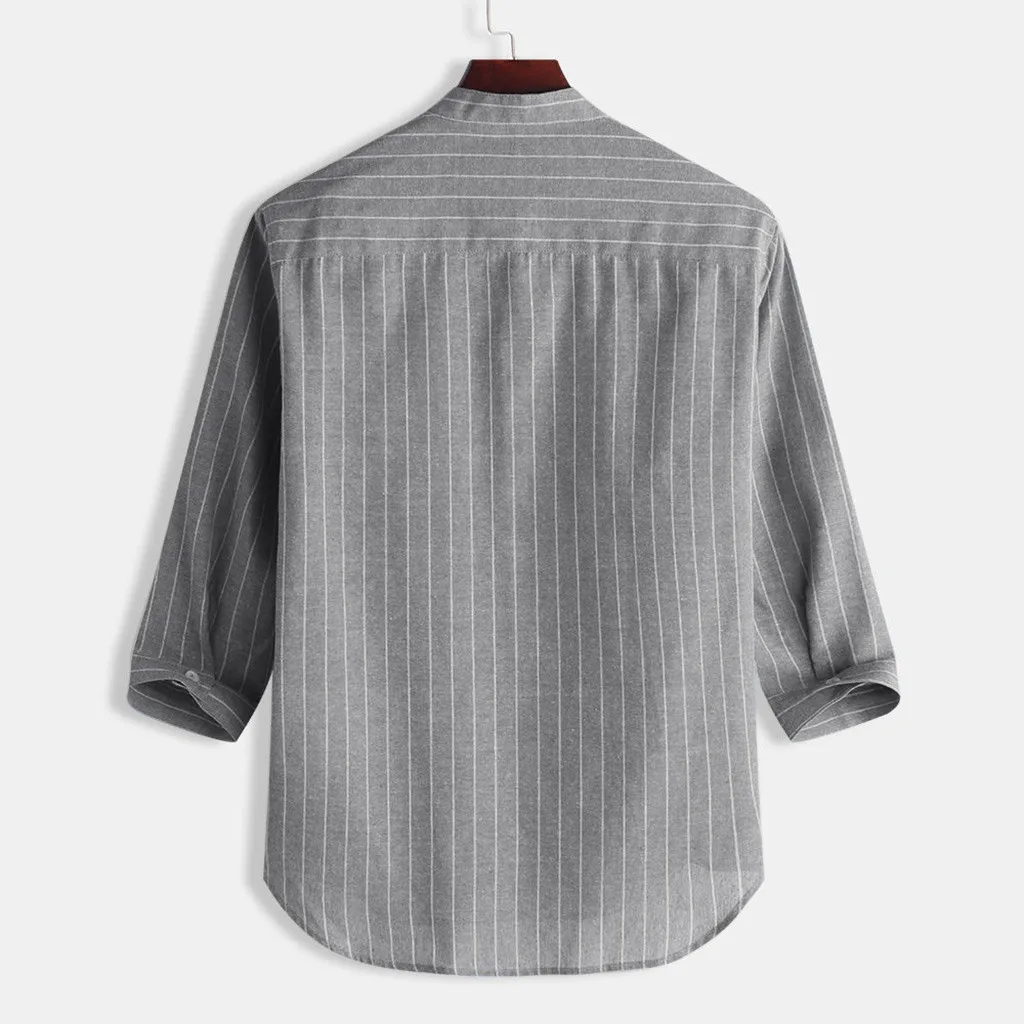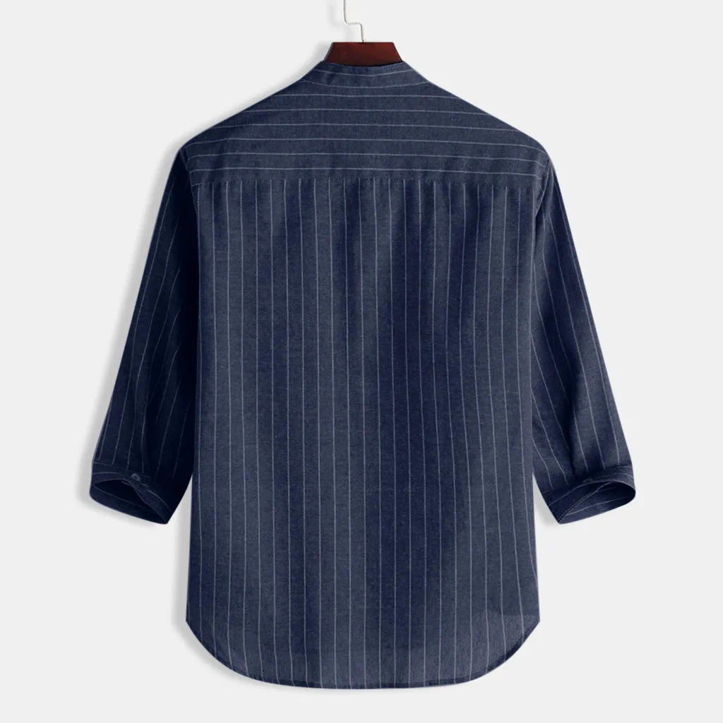 Striped Linen Three Quarter Sleeve Men's Shirt