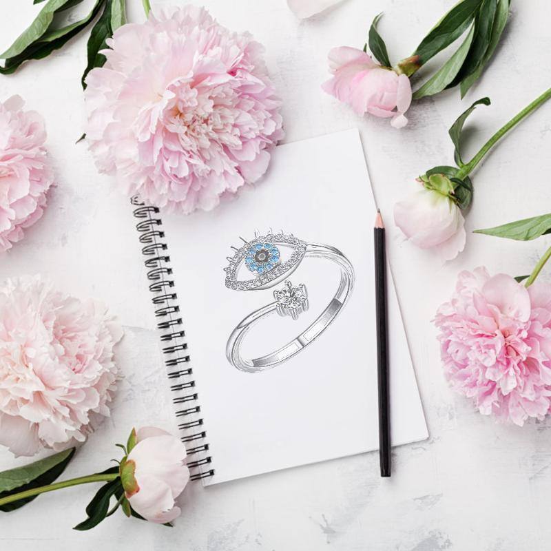 Blue Evil Eye Ring Design- The color of evil eye protection. The traditional color for good karma, positive energies and protection against the evil eye. It symbolizes truth and therefore it provides direct protection against the evil eye.