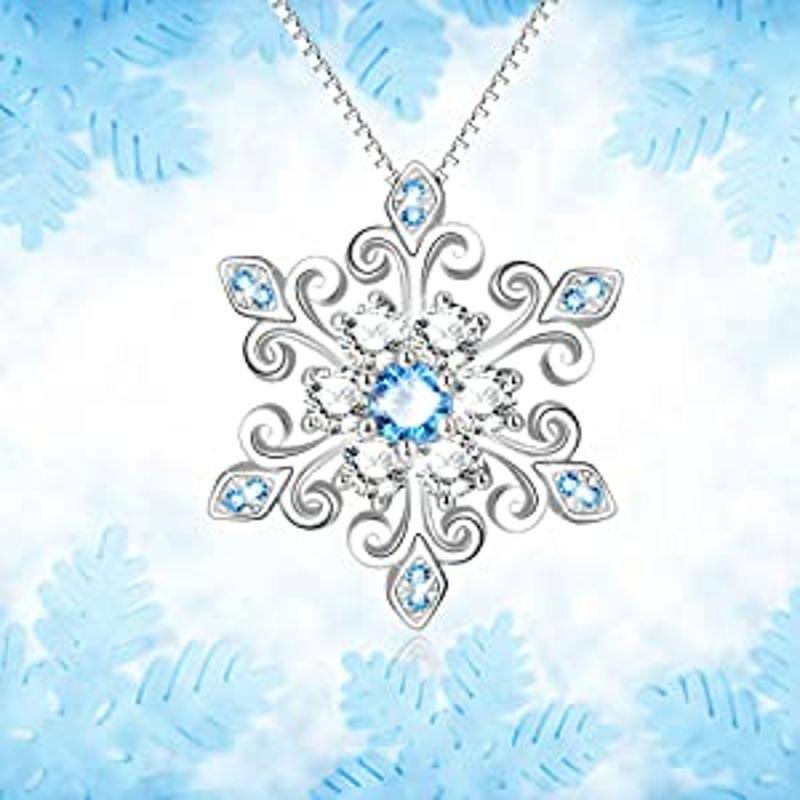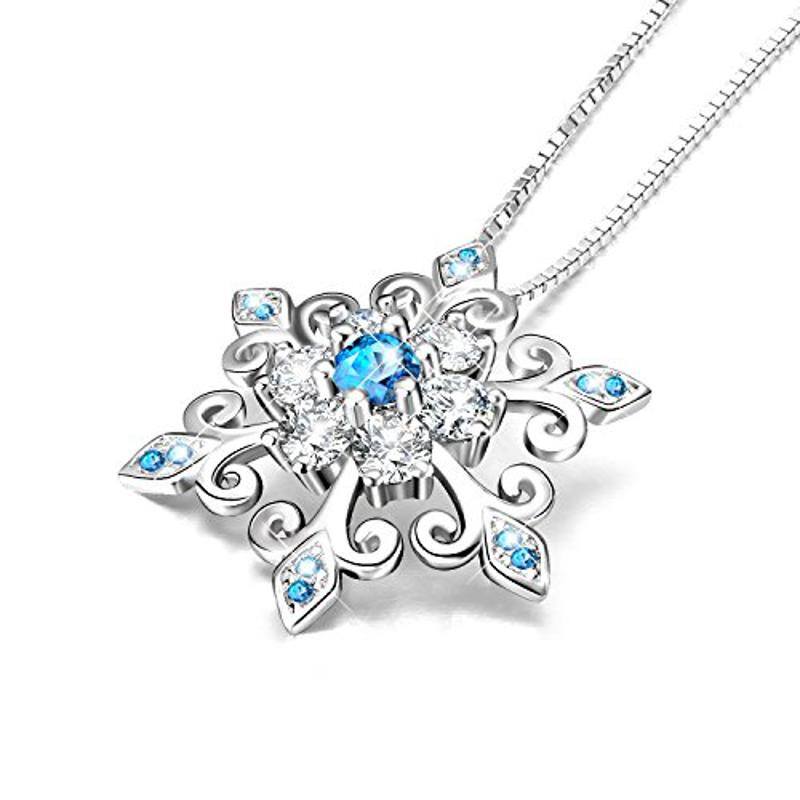 Silver Snowflake Pendant Necklace Blue and White Romantic Jewelry Gift